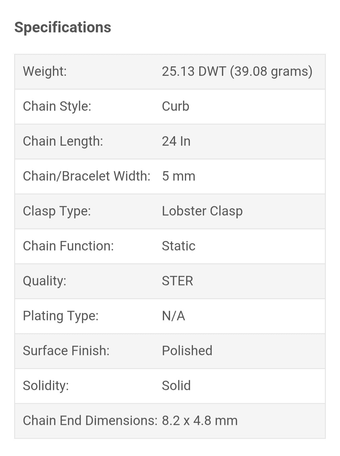 Command attention with this masterfully crafted Solid Sterling Silver Curb Chain. Boasting a substantial weight of 39.08 grams, this 24-inch piece offers a premium, solid feel that far surpasses hollow alternatives. Its 5mm width provides the perfect balance of bold presence and timeless sophistication, while the high-polished finish ensures a brilliant shine from every angle. Completed with a secure lobster clasp, this durable and classic chain is an essential investment for the modern wardrobe, designed to be worn with confidence for years to come.